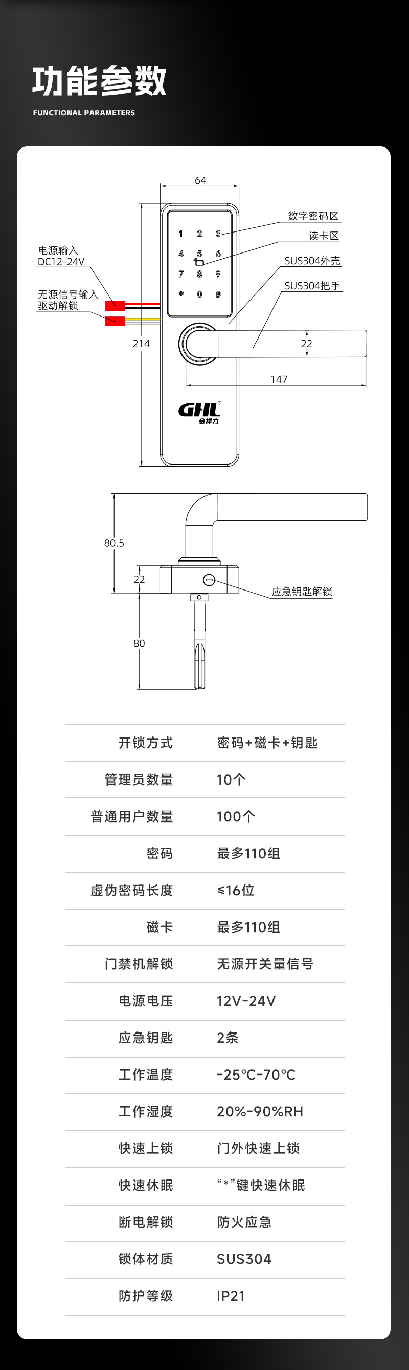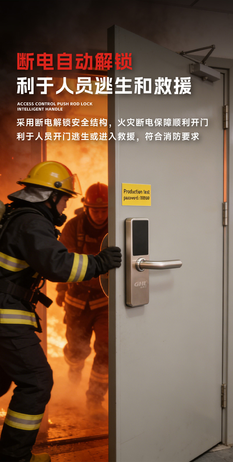 • 断电自动解锁,利于人员逃生或者开门救援,保障消防安全